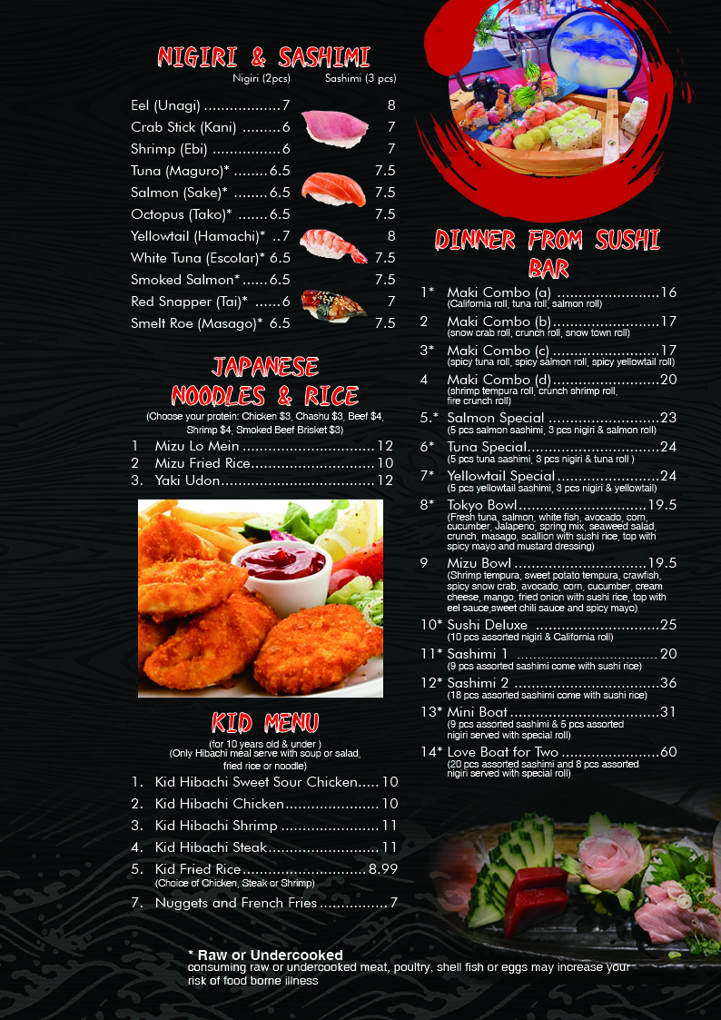 - Diverse Offerings: Beyond sushi, the menu boasts dishes like pork soup dumplings and hibachi seafood deluxe, ensuring there's something for everyone.